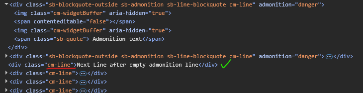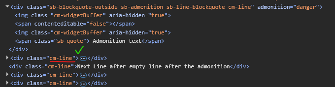 -the <div> following the admonition gets a sb-line-blockquote class and the <span> sb-quote class. as if the admonition ābleedsā into the normal text.