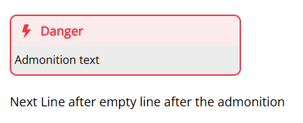 Scenario 3: You end your admonition with an empty quoted line (>) or a blank line inside it.