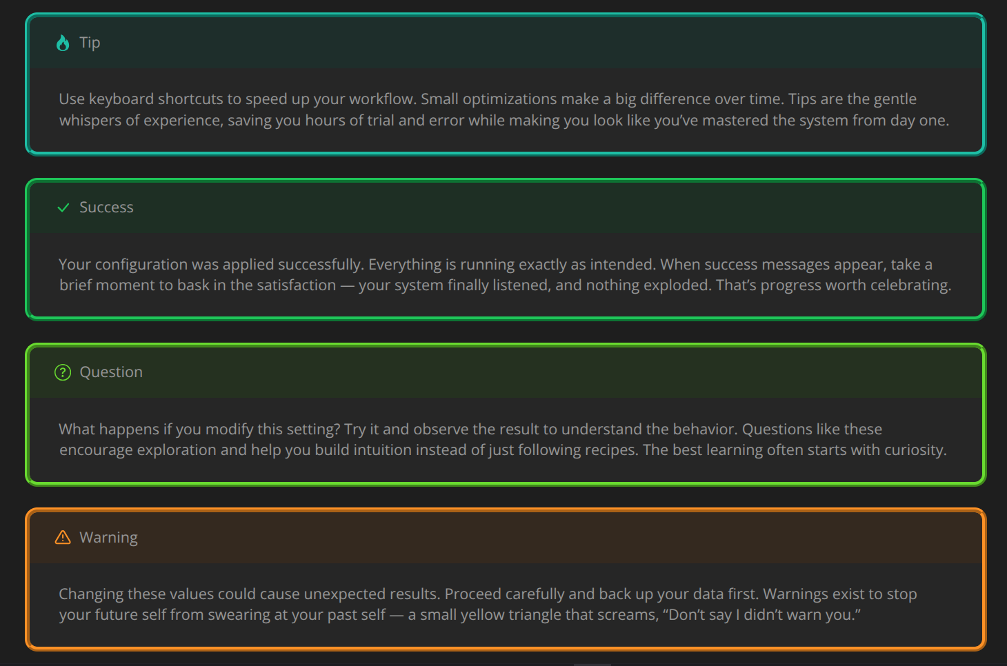 [EDIT]: Added also the possibility to easily customize the sIze & weight of the title, and the size of the normal admonition text.