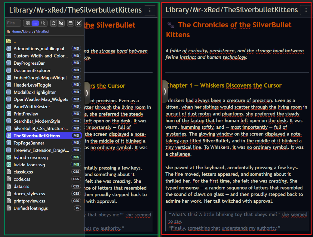 I’ve always found the default side-panel width behavior in SilverBullet (relying on fixed fractions of viewport width) to be a bit restrictive. I believe our workspaces should be as flexible as our notes.