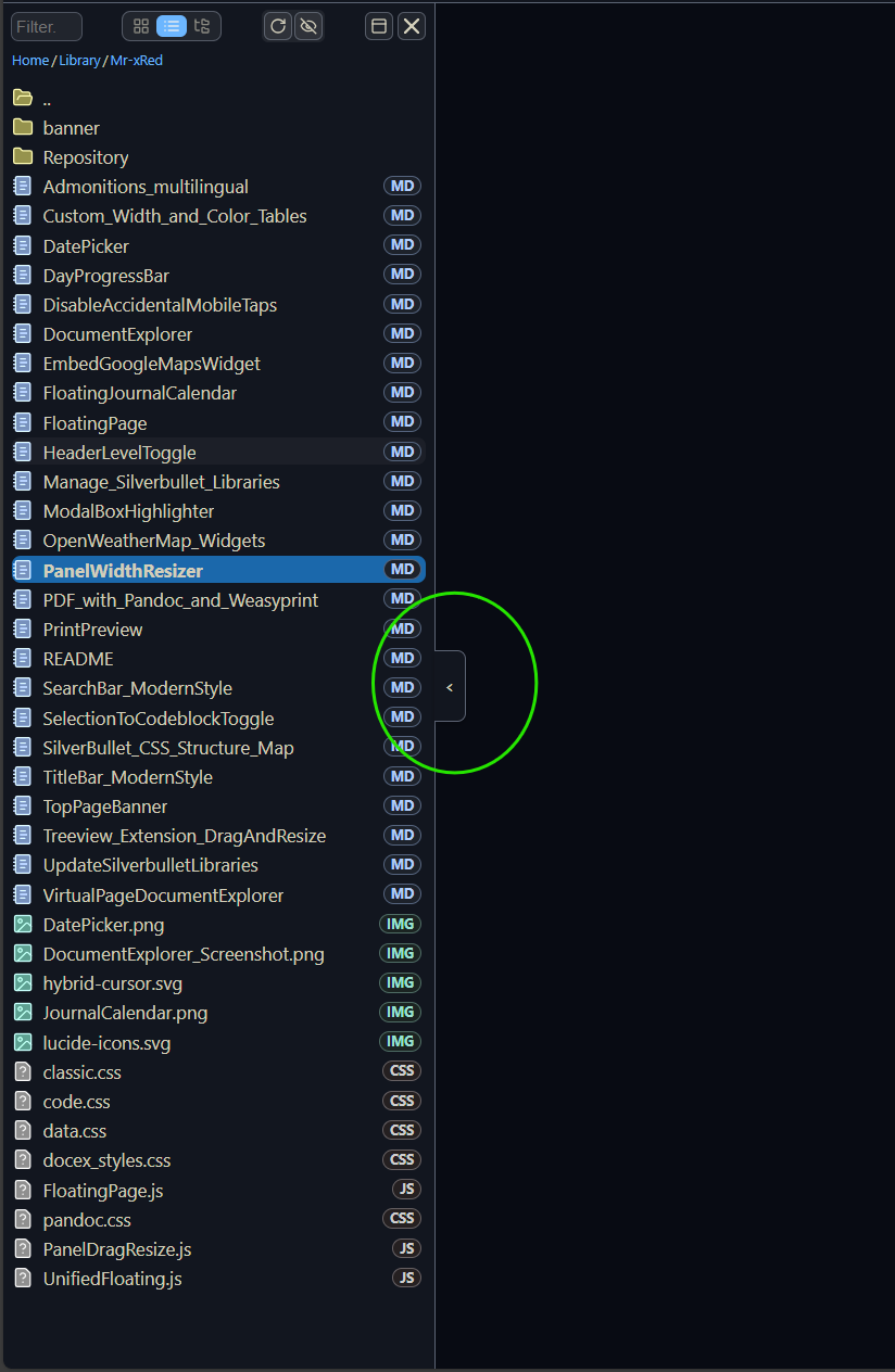 [BREAKING CHANGE]: the PanelWidthResize was renamed to “AdvancedPanelControls” - just to stay open for future addition, because why stop there, only controling the width? - if you had it installed before as a dependency and you Updated Document Explorer - please delete manually the PanelWidthResizer.md library