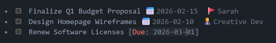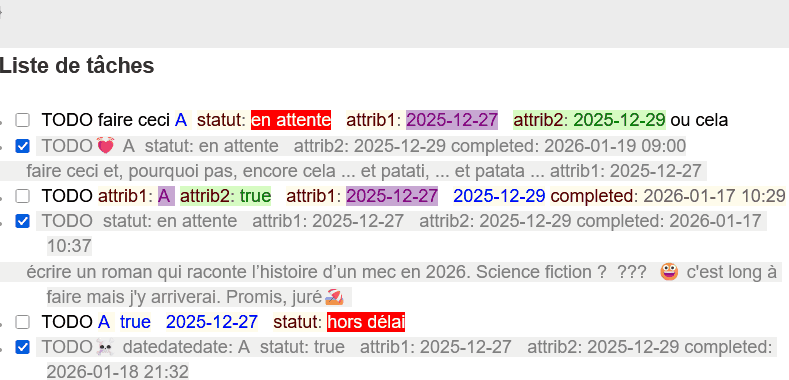 Here's the minimal working solution to strike only the task text while leaving attributes unaffected:
