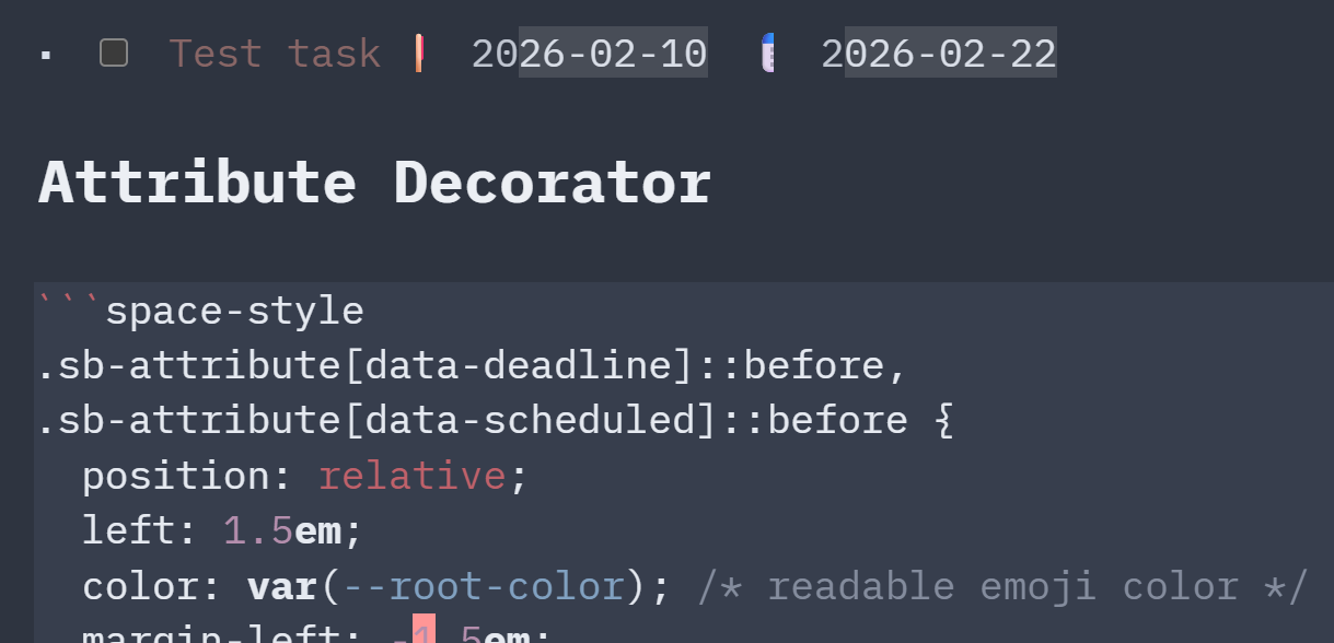 Probably related to the fact that the structure elements (meta) and the attribute name (atom) are still displayed although "hidden" by the background color assignment.