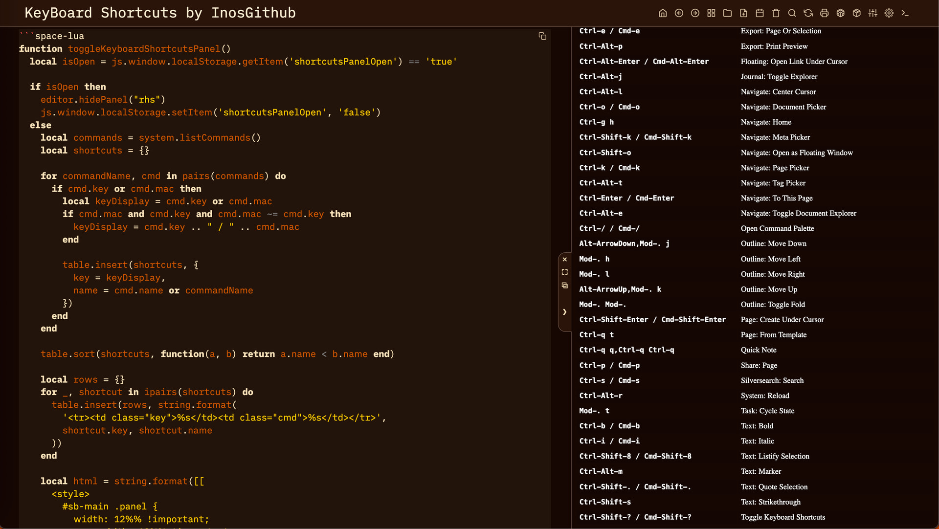 Here is a Help-Funktion to show all the registerd shortcuts using Ctrl-Shift-?: