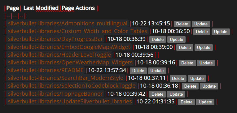 As an alternative, it might make more sense to submit PRs only to the official silverbullet-libraries repository and include only links to each fork, similar to what @malys is doing here. Instead of posting these in the forum, we could create a list on GitHub and include the links to each creator’s personal fork in the README.