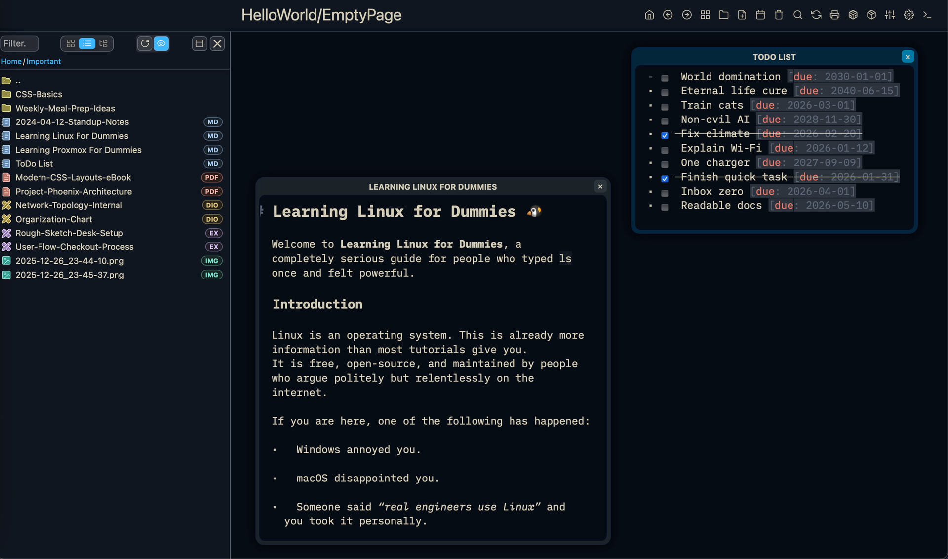 In Obsidian, there was the possibility of viewing and editing in a small window that opened when you hovered the mouse over the link. Like on Wikipedia… That would be a dream!