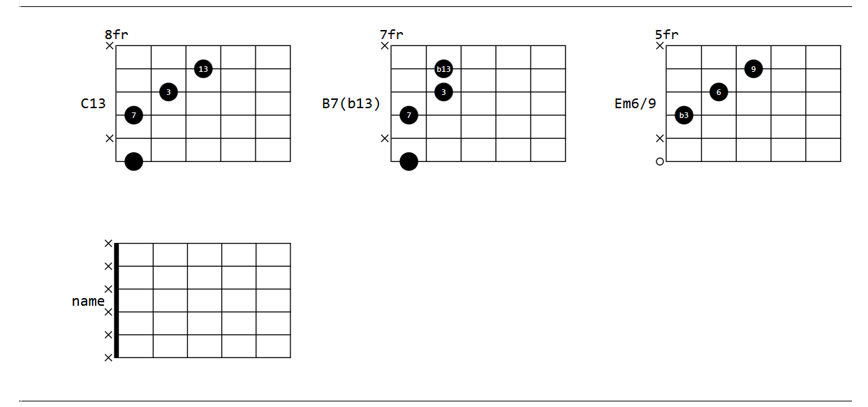 A hacky attempt to render guitar chord fingerings via SVGuitar JS library.
