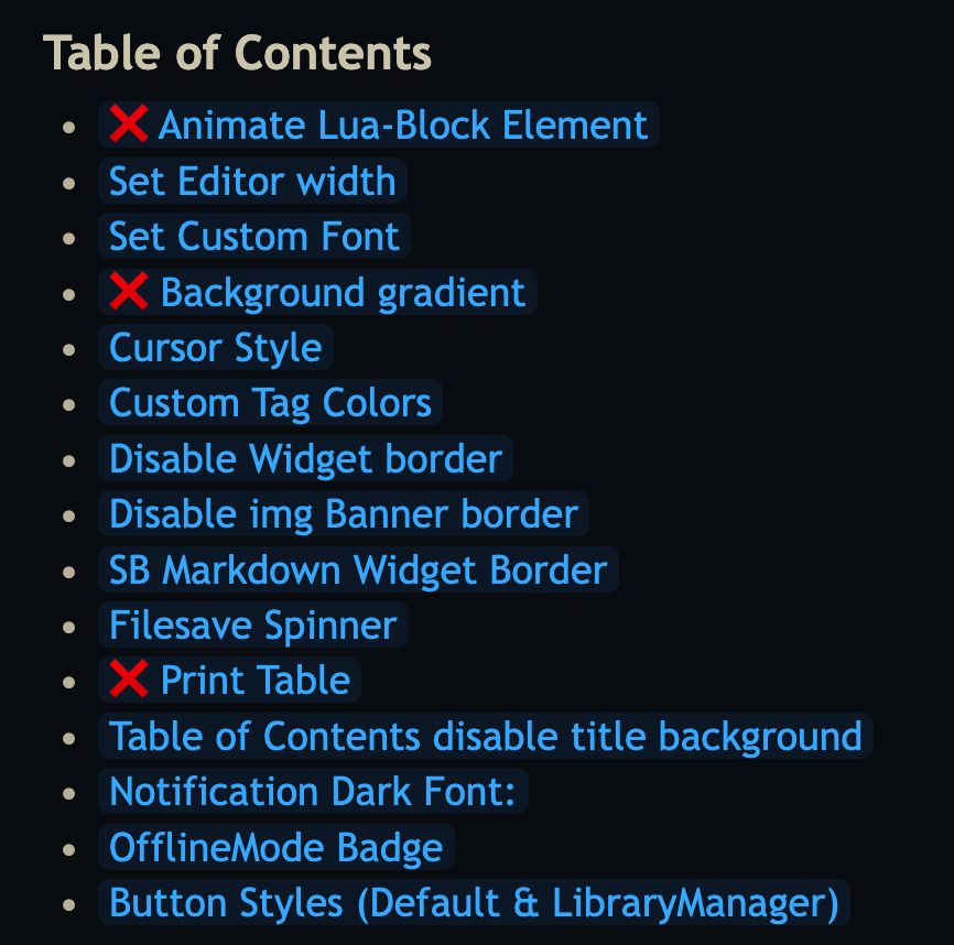 but feel free to test any of them. I can recommend you import them all in your space, disable them by deleting the space-style tag from each of the codeblocks, and enable them one by one, to see the change, and if you want to keep it or not.
