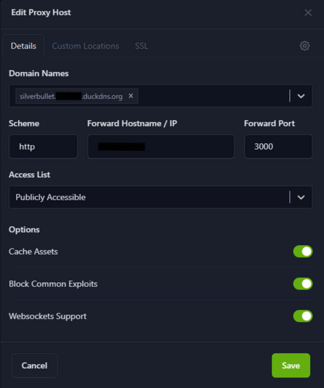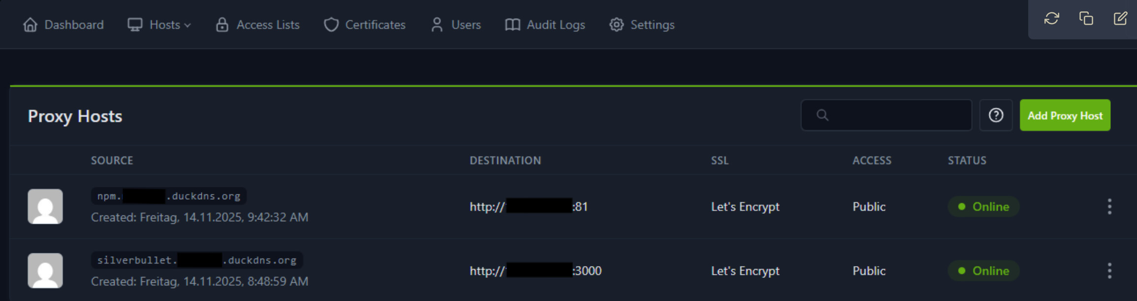nginx-proxy-manager(usually the same on which silverbullet is already running) then clickUpdate IP