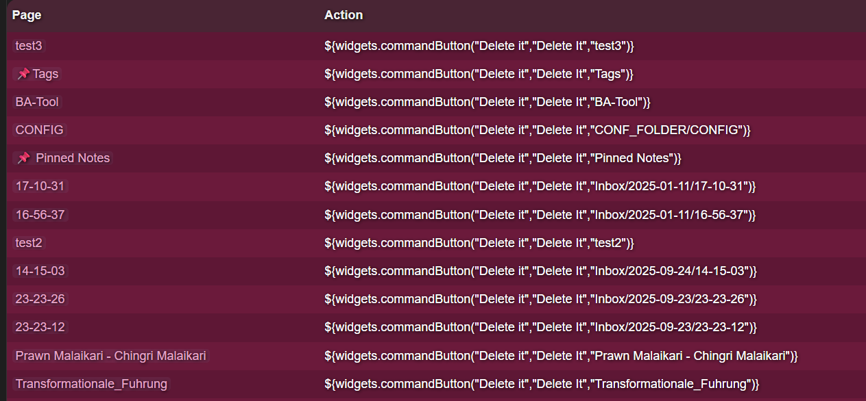 It is basically a query with a custom template showing all pages, their names, last modified and a custom “delete it” button: