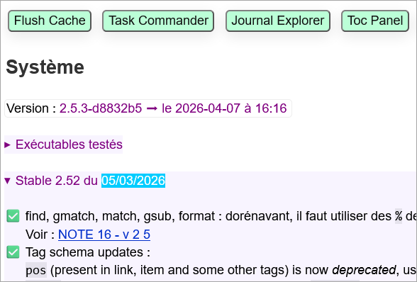 SilverBullet 2.6 is a big one. Under the hood, the entire TypeScript/client codebase has migrated from Deno to Node.js (now using vitest for tests), with bundle size optimizations via chunked ESBuild builds and JIT loading of larger modules. On top of that, there's a brand new (experimental) Runtime API and accompanying CLI that let you programmatically drive a remote SilverBullet server, evaluating Lua expressions, running scripts, and fetching console logs against a full client running in headless Chrome. The Outlines commands have been thoroughly reworked to be more robust and now handle numbered items, headers, and paragraphs. And Space Lua gets meaningful performance improvements through interpreter hot-path optimizations.