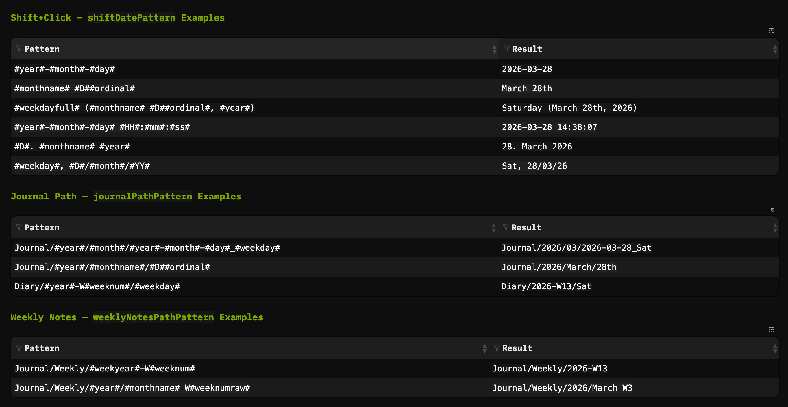 Great functionality, I love the new look. What I would still love is a combination of the Shift & Ctrl click functionalities, aka - I'd like to be able to generate a link like this [[Journal/2026/03/2026-03-28|March 28, 2026]].