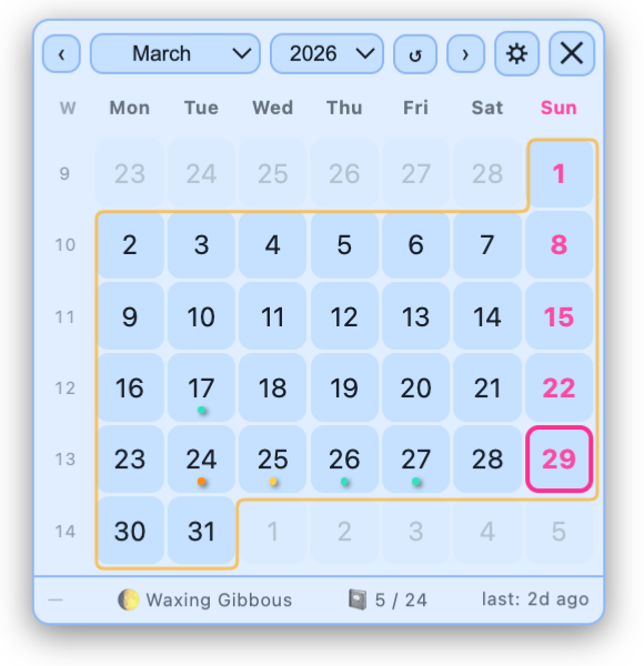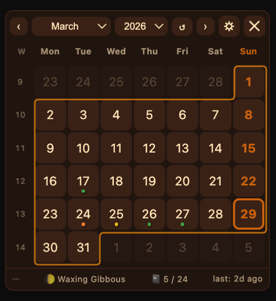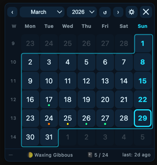 If you are bored of the default calendar colors and you don't want to fiddle with space-lua or space-config to just adjust some colors. this update is for you: