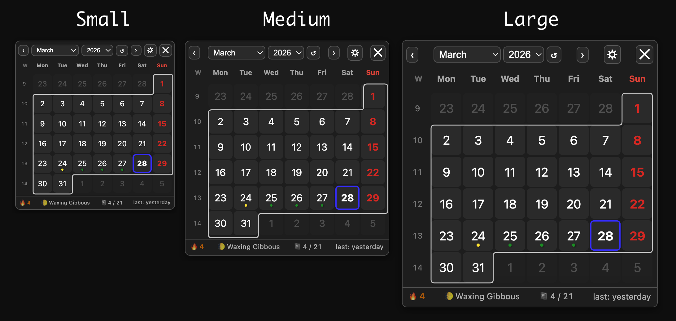 Inspired by @jagwarrx 's implementation of ItsyCal Design, I also updated the Floating Journal Calendar: