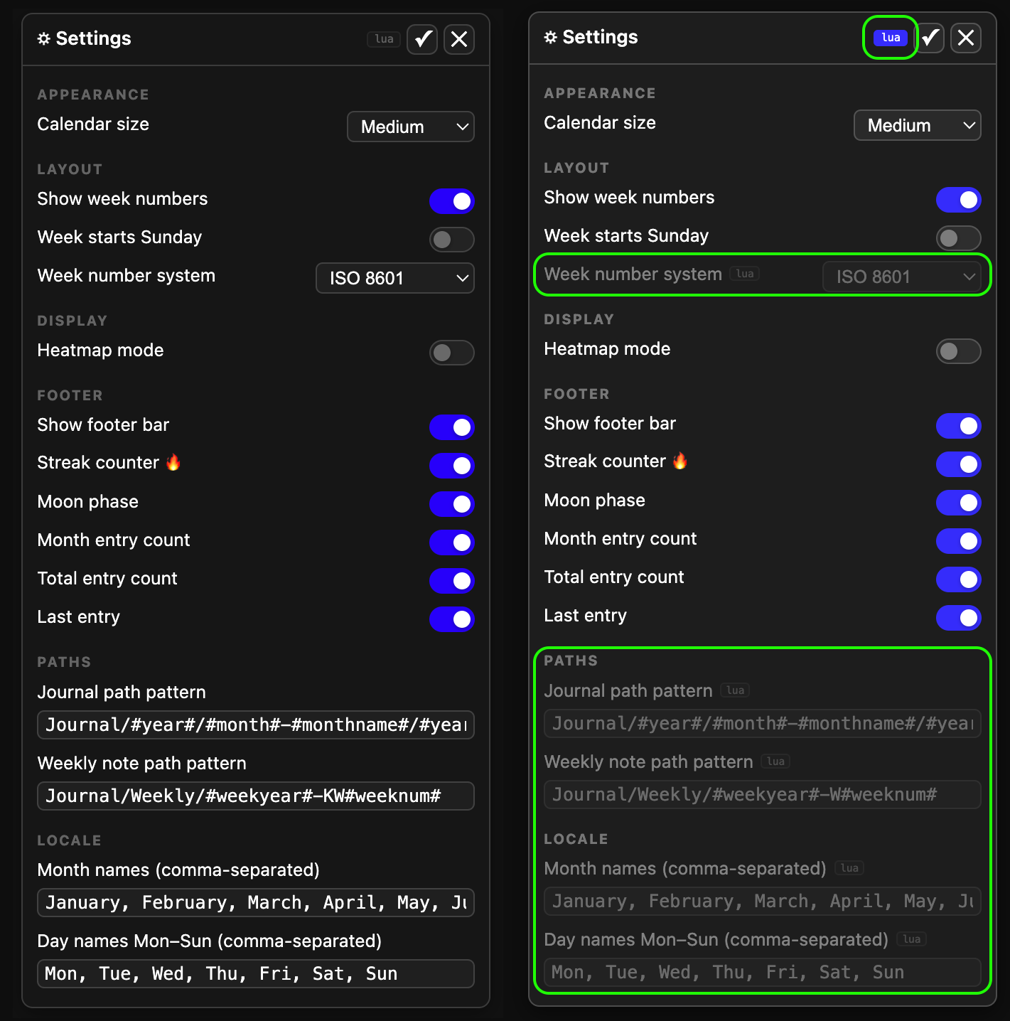 I will also add a Settings button to toggle the new features/fîelds on/off instead of needing to config them through the space-lua block: