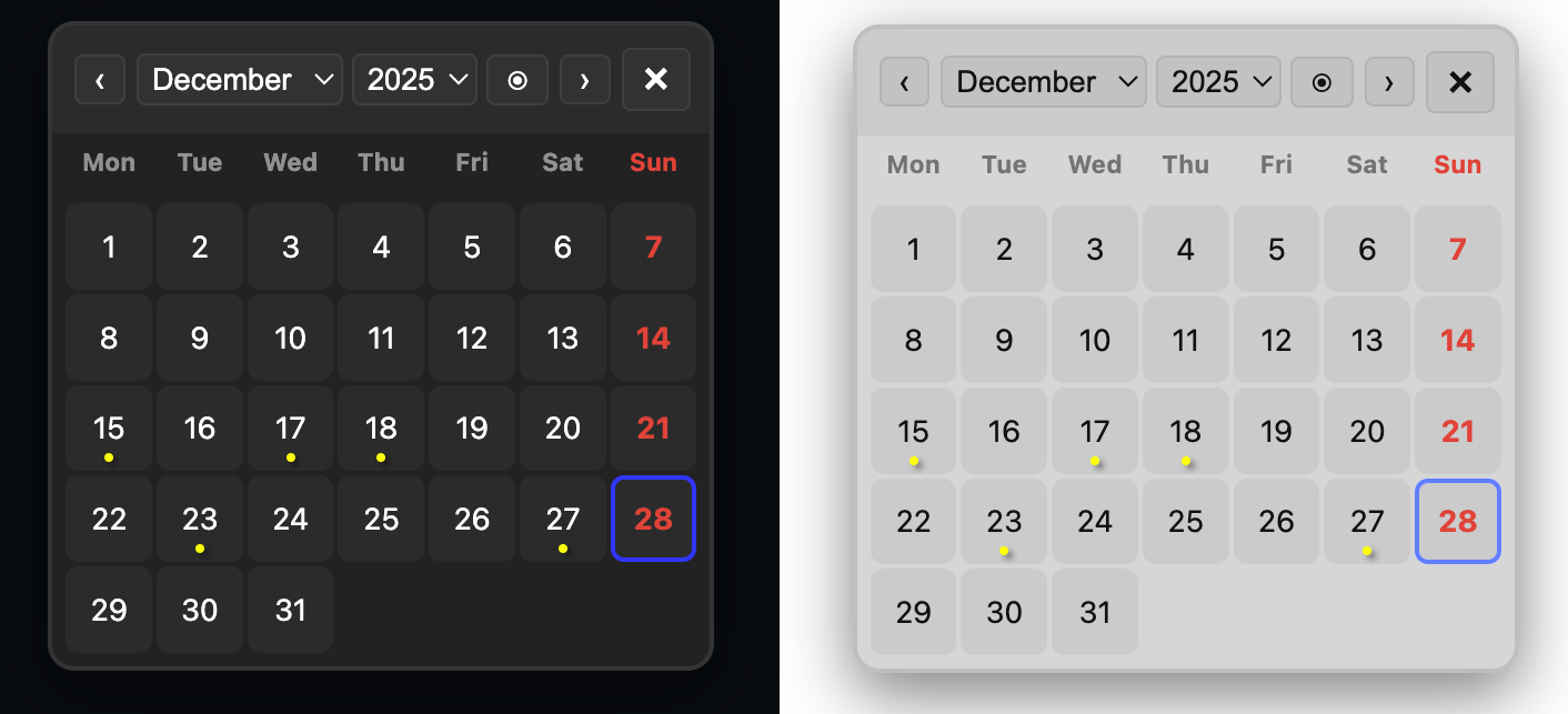 Indeed, I don’t use the Dark theme for silverbullet but I find that the calendar looks prettier in Dark (“the tastes and the colors…!”). To achieve this, I simply duplicated the 3 css lines from [data-theme=“dark”] to [data-theme=“light”].