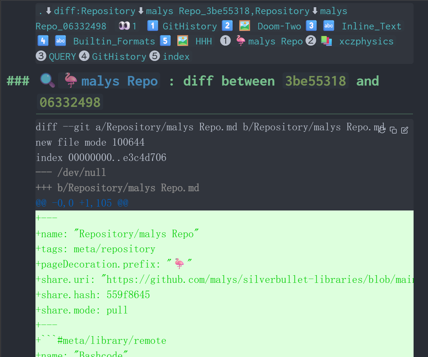 return get_diff_between_commits(from.hash, to.hash, from.path .. ".md")