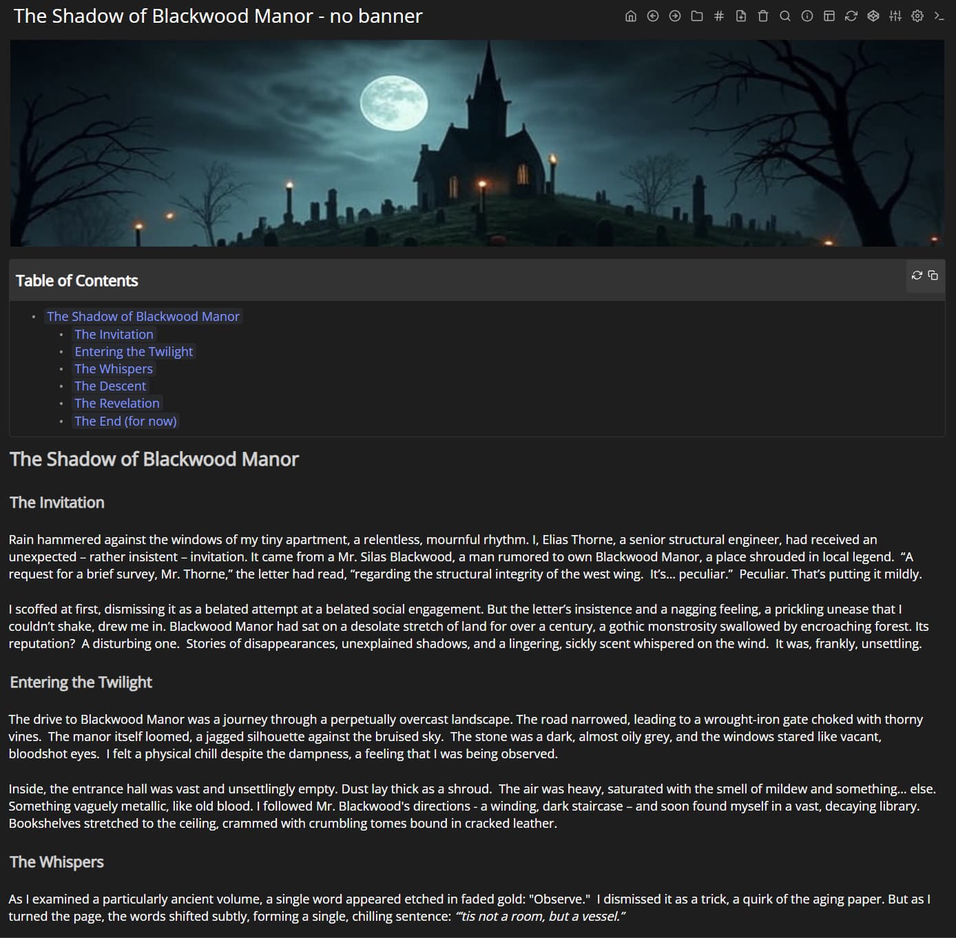 - if you have Table Of Contents enabled on the page, the banner will be above the TOC