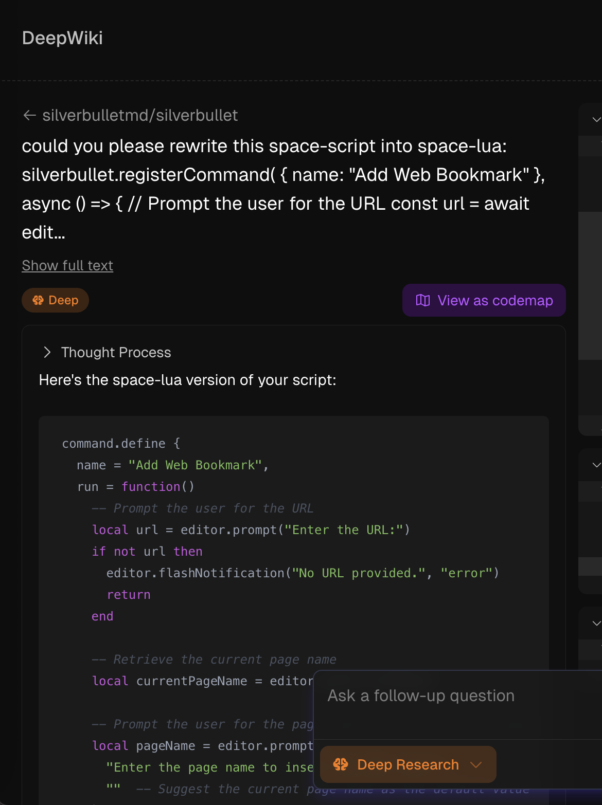 If you ask deepwiki nicely, it could rewrite/convert simple space-scripts into space-lua. or if it fails you could always try to use some smarter LLM's like claude or gemini or even chatGPT.
