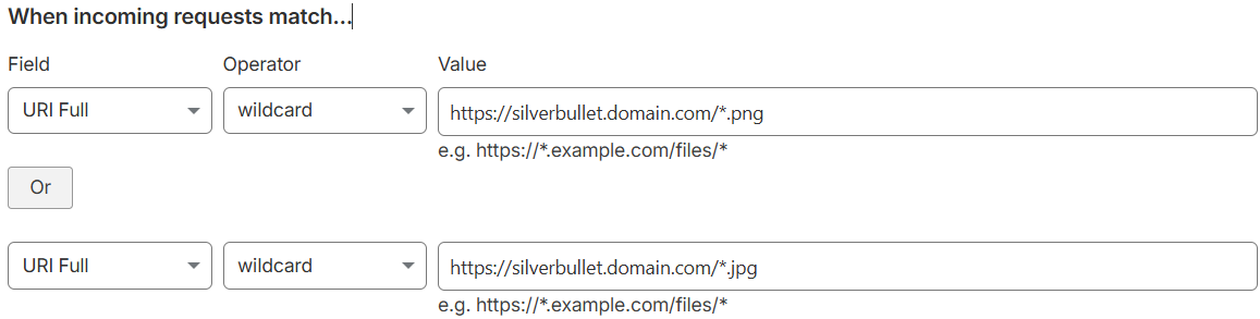 Create expression like below (NOTE: You need to separate them with OR ). You can also add additional queries for /*.pdf, or other doc formats as needed