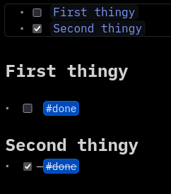 One issue is, that toggling the task under the header does not immediately update the task in the list, the other way around it works fine.